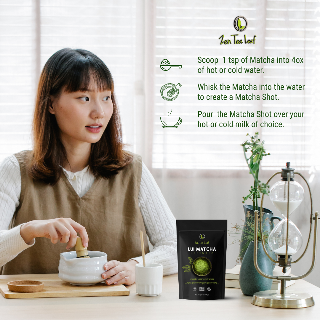 Spring harvest, organic imperial ceremonial-grade matcha. Exhibits a smooth, mild, sweet & pleasant umami flavor with zero bitterness.