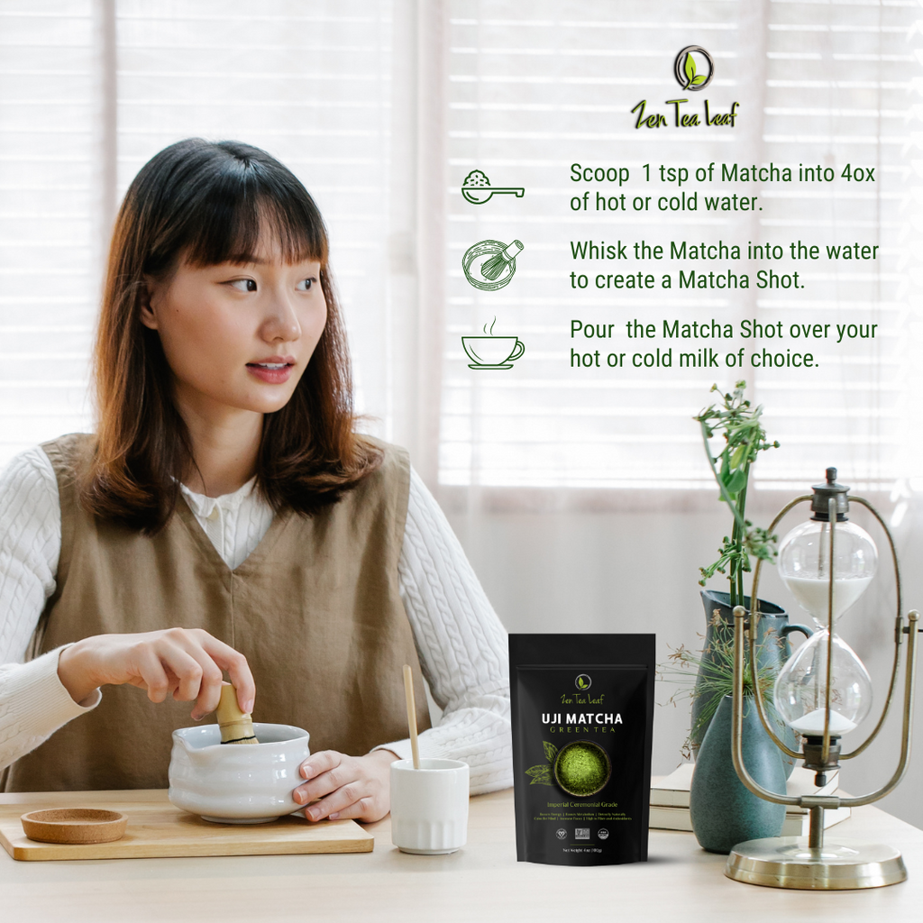Step into calm clarity with every sip. Zen Tea Leaf Matcha isn’t just tea—it’s a ritual. Whisked to a vibrant froth, it delivers smooth, earthy notes that awaken your senses while grounding your mind. Imagine energy that feels clean, steady, and serene—not the jittery crash of coffee, but calm focus that carries you through your day.