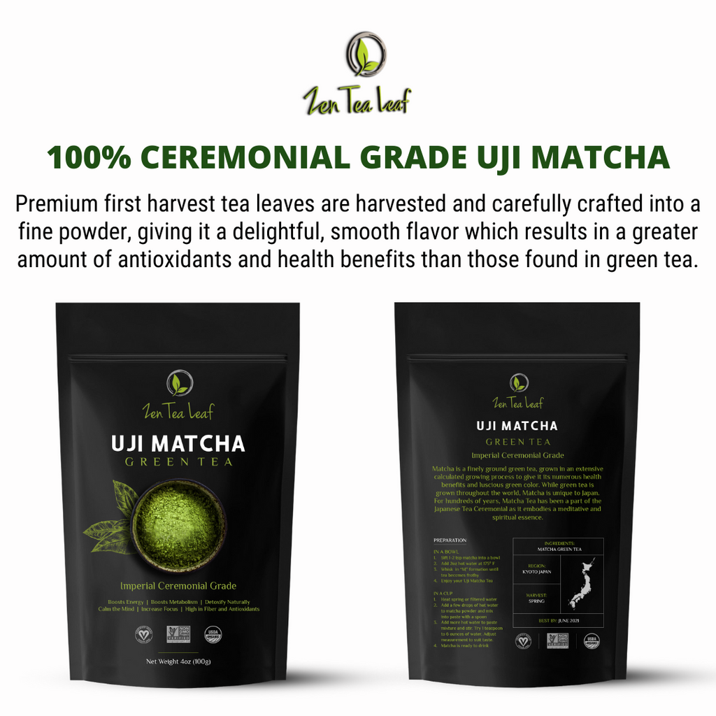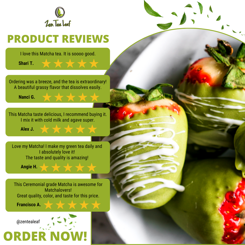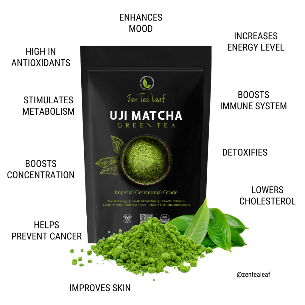 The unique combination of caffeine and theanine in Zen Tea Leaf Matcha gives you a feeling of calm and alert at the same time without the jitters and it keeps you mentally focused without the crash. We at Zen Tea Leaf call it Zenergy. More powerful benefits include; Loaded with fiber, antioxidants and phytonutrients; 137X more antioxidants than traditional green tea; Boosts Immune System; Boosts Energy; Increases focus; Boosts metabolism and burns fat; Detoxifies naturally; Calms the mind.